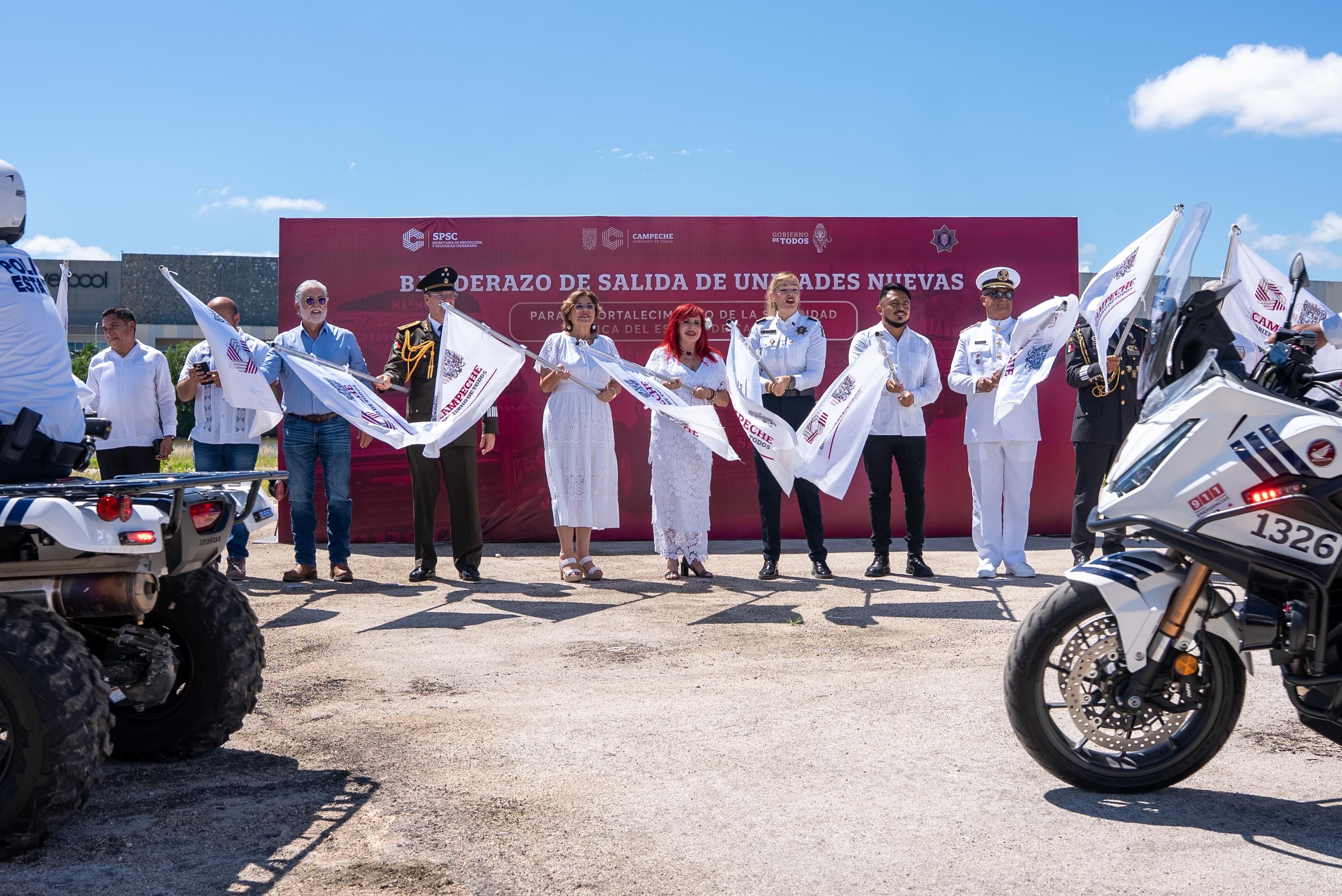 La Gobernadora Layda Sansores San Román encabezó este sábado en la Dársena de San Francisco la entrega y banderazo de salida de nuevas unidades vehiculares para el fortalecimiento de la seguridad pública, con una inversión histórica superior a los 86 millones de pesos, recursos provenientes de los fondos FASP y FOFISP, ejercicio fiscal 2025.
