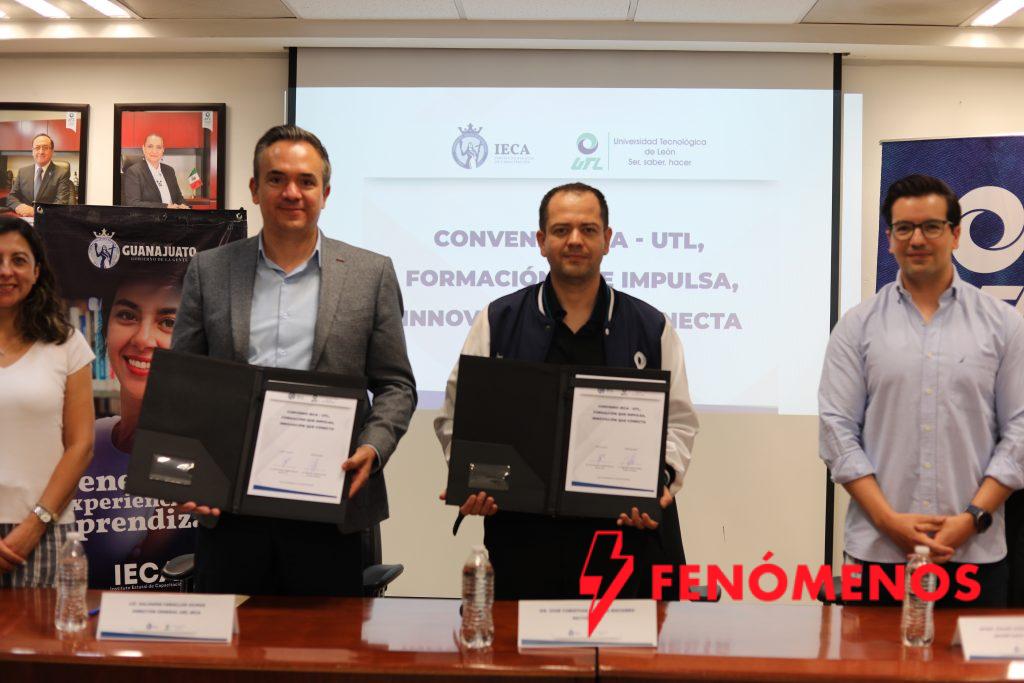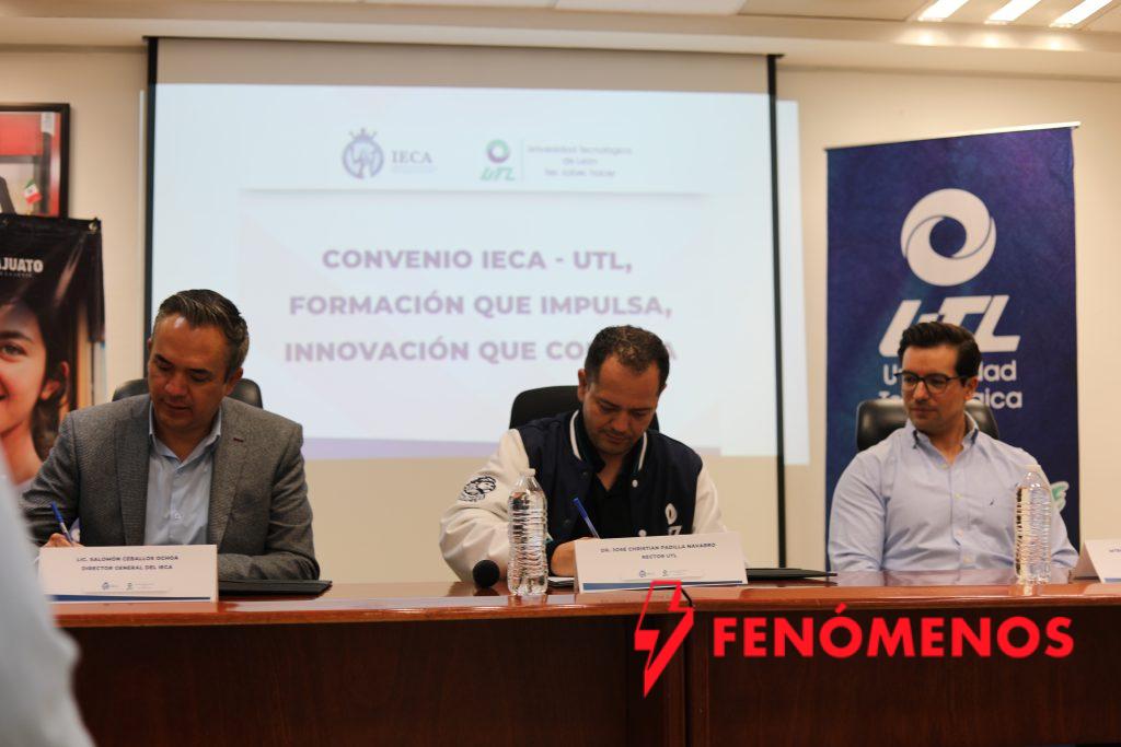 León, Guanajuato, 06 de abril de 2026. El Instituto Estatal de Capacitación (IECA) y la Universidad Tecnológica de León (UTL), firmaron un convenio para ampliar las opciones de capacitación, certificación y vinculación laboral para estudiantes y egresados, con el objetivo de fortalecer su preparación y acercarlos al mercado laboral.