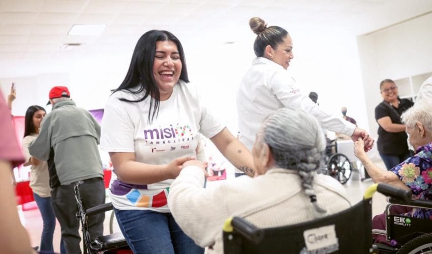 Durante la actividad, integrantes de los programas “Misión Tamaulipas” y “Emprendedores” participaron en dinámicas de convivencia y escucha activa, orientadas a reconocer el valor, la experiencia y las historias de vida de las personas adultas mayores.