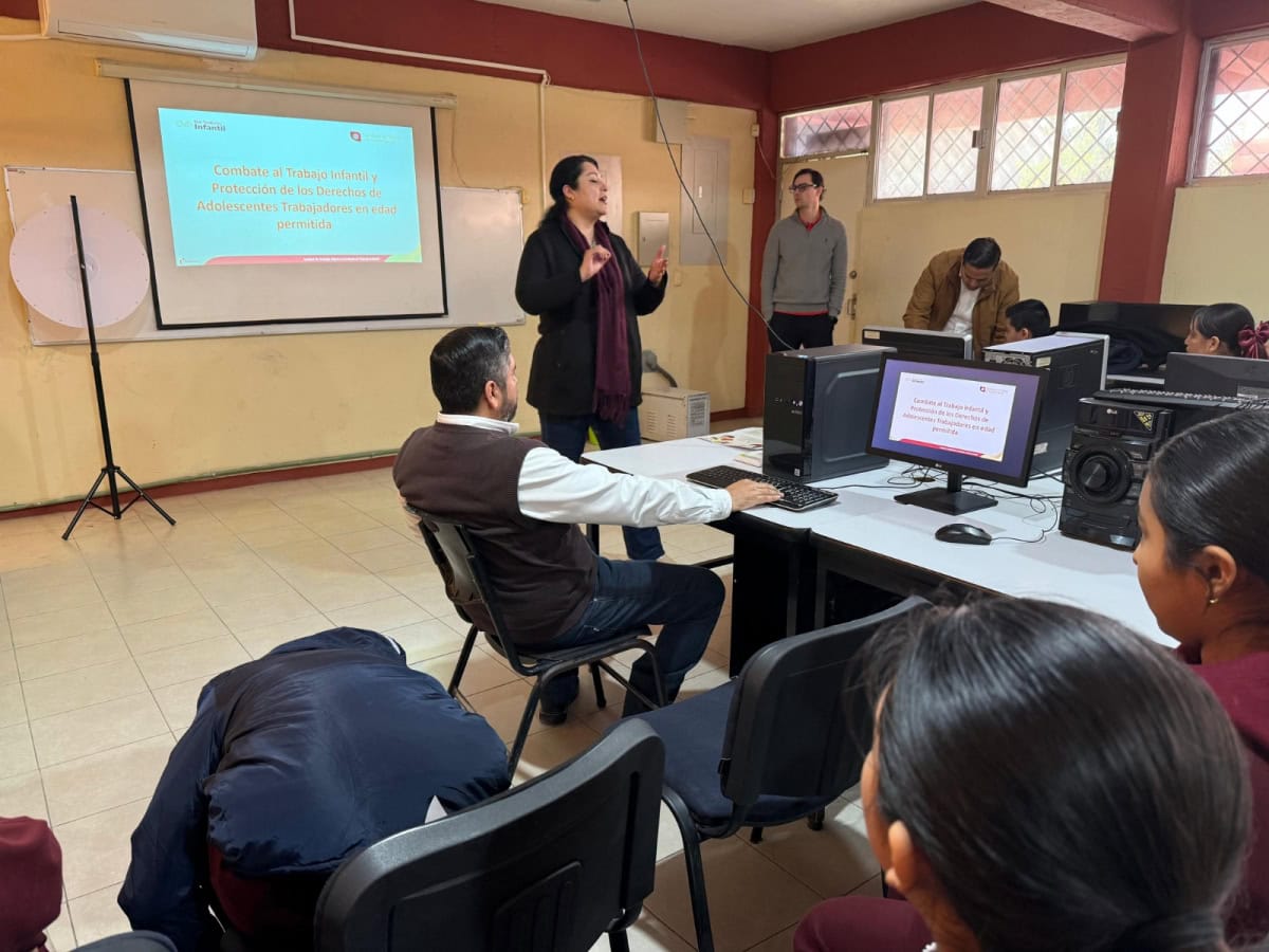 Como parte de estas acciones, a través de la Dirección General de Inspección y Previsión Social y por conducto de la Unidad de Trabajo Digno y Combate al Trabajo Infantil, que encabeza Federico Emilio Manautou Rodríguez, se llevó a cabo una sesión informativa del Plan para el Combate al Trabajo Infantil y Protección de los Derechos de Adolescentes Trabajadores en Edad Permitida en la Secundaria Técnica No. 90 “Eugenio Hernández Balboa”, en Ciudad Victoria.