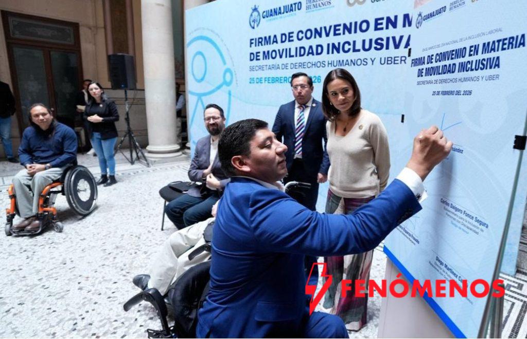 Guanajuato, Gto., febrero 26 de 2026.– En el marco de una política pública centrada en la dignidad humana y la igualdad sustantiva, el Gobierno de la Gente consolidó una alianza estratégica en favor de la movilidad inclusiva, mediante la firma simbólica del Convenio en Materia de Movilidad Inclusiva entre la Secretaría de Derechos Humanos y Uber México.