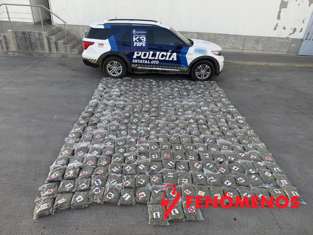 Guanajuato, Gto., a 17 de diciembre de 2025.- Personal de las Fuerzas de Seguridad Pública del Estado (FSPE) y la Unidad Canina K9 lograron frustrar el envío de un cargamento de droga que pretendía ser trasladado desde Guadalajara con destino a los estados de San Luis Potosí y Querétaro.