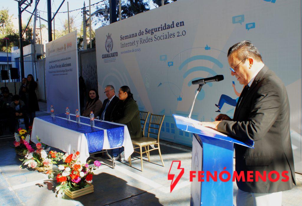 Guanajuato, Gto., 7 de noviembre de 2025.– Con el propósito de fortalecer la cultura de prevención y fomentar el uso responsable de la tecnología entre niñas, niños y adolescentes, la Secretaría de Educación de Guanajuato (SEG) clausuró la Semana de Seguridad en Internet y Redes Sociales, realizada como parte de la Jornada Nacional por la Paz y contra las Adicciones “El fentanilo te mata, aléjate de las drogas. Elige ser feliz”, impulsada por el Gobierno de la Gente.