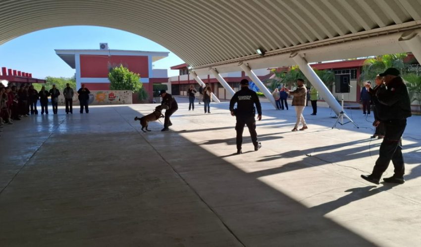 Durante la jornada se contó con la intervención del binomio canino “Max”, especializado en detección de narcóticos e intervención policial, como parte del programa “Para una vida saludable y seguridad escolar”.