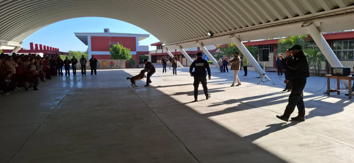 En el operativo participaron los manejadores de los perros, quienes brindaron labores de seguridad perimetral durante el desarrollo de la actividad. Este tipo de acciones forman parte de la estrategia de proximidad social y prevención del delito que implementa la Guardia Estatal en planteles educativos, orientada a inhibir conductas de riesgo y reforzar la seguridad.