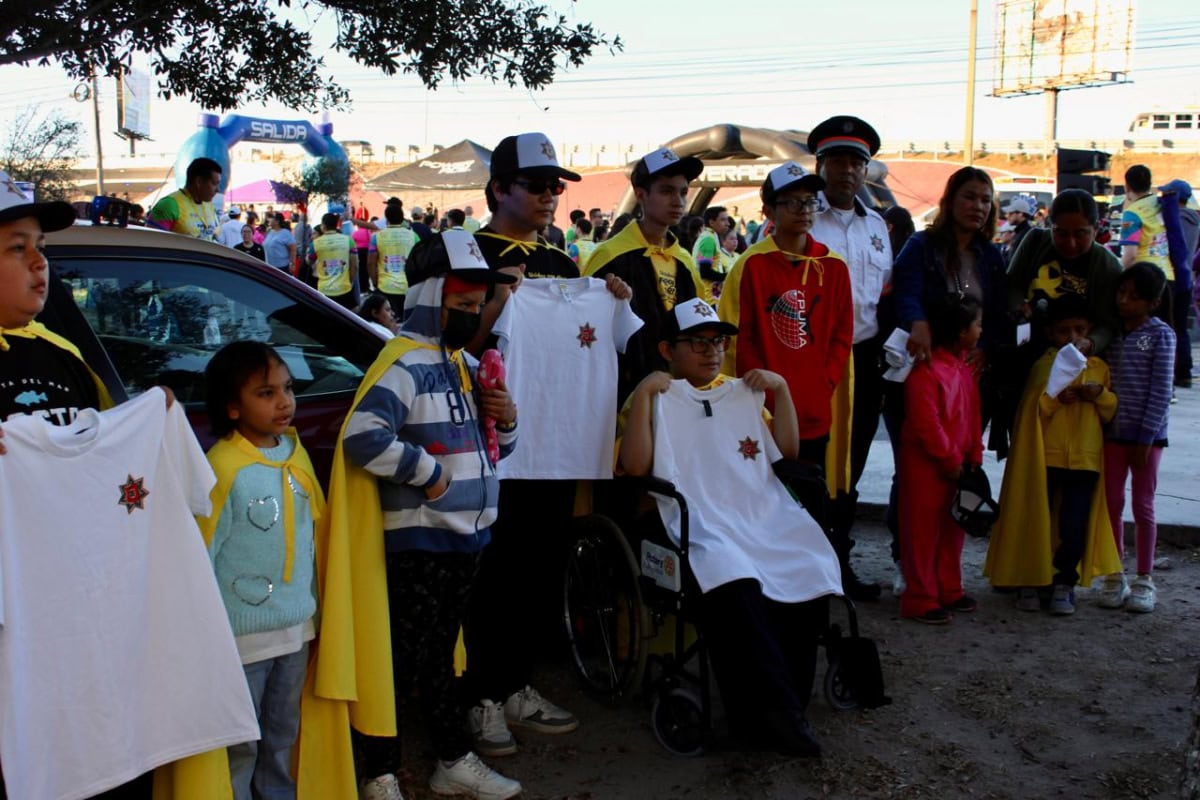 Reynosa, Tamaulipas.- En el marco del Día Internacional contra el Cáncer Infantil, personal de la Guardia Estatal y Dirección de Tránsito Estatal de la Secretaría de Seguridad Pública de Tamaulipas (SSPT) convivieron con familias reynosenses en la carrera “Pequeños Héroes” 2026.