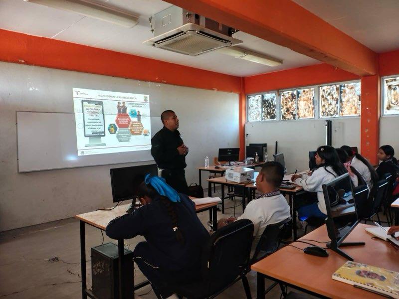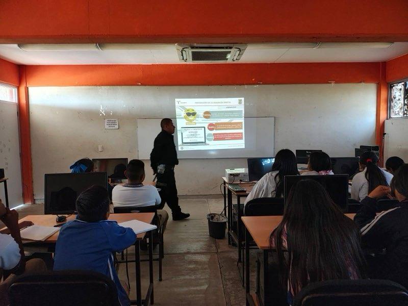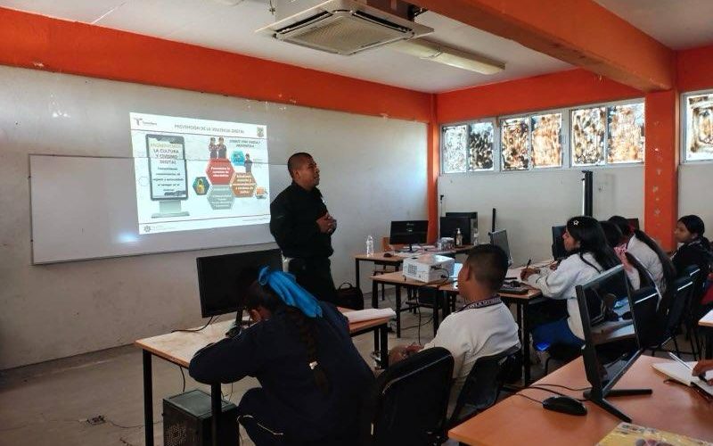 Mediante esta actividad, el personal de la Guardia Estatal abordó temas relacionados con riesgos digitales, medidas de autocuidado en internet, uso responsable de redes sociales y prevención de conductas constitutivas de delito en entornos digitales.