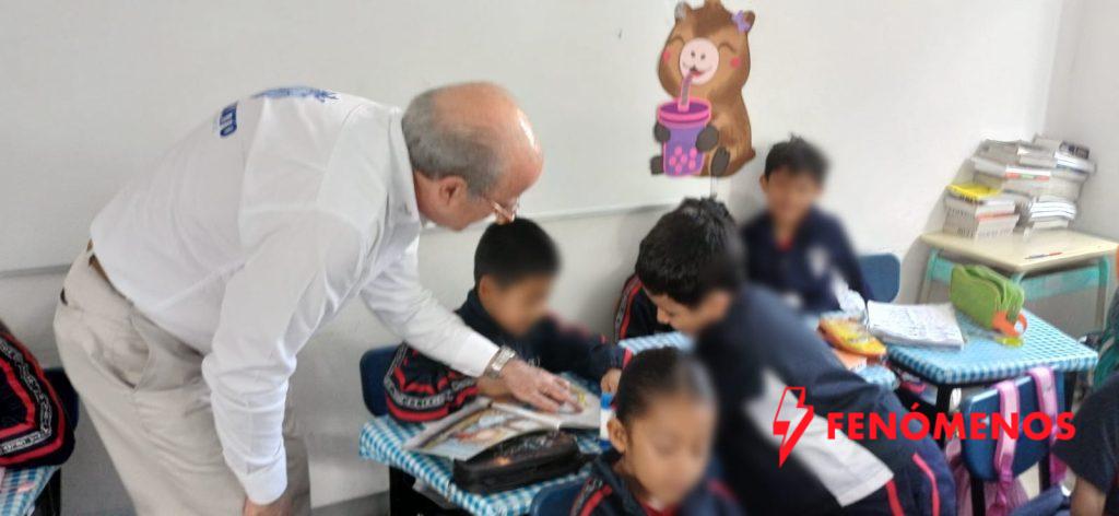La jornada comenzó en la Escuela Primaria Emeteria Valencia, donde el secretario visitó las aulas desde 1° hasta 6° grado y en cada salón interactuó con estudiantes enfatizando la importancia de la lectura.