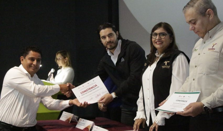 Ciudad Victoria, Tamaulipas.- La Secretaría del Trabajo y Previsión Social del Gobierno de Tamaulipas participó en el cierre del curso “Proyecto de Certificación de Operador de Transporte Híbrido”, realizado en el Auditorio Tamux de Ciudad Victoria, donde se llevó a cabo la entrega de constancias a conductores de transporte público que concluyeron satisfactoriamente su proceso de formación.