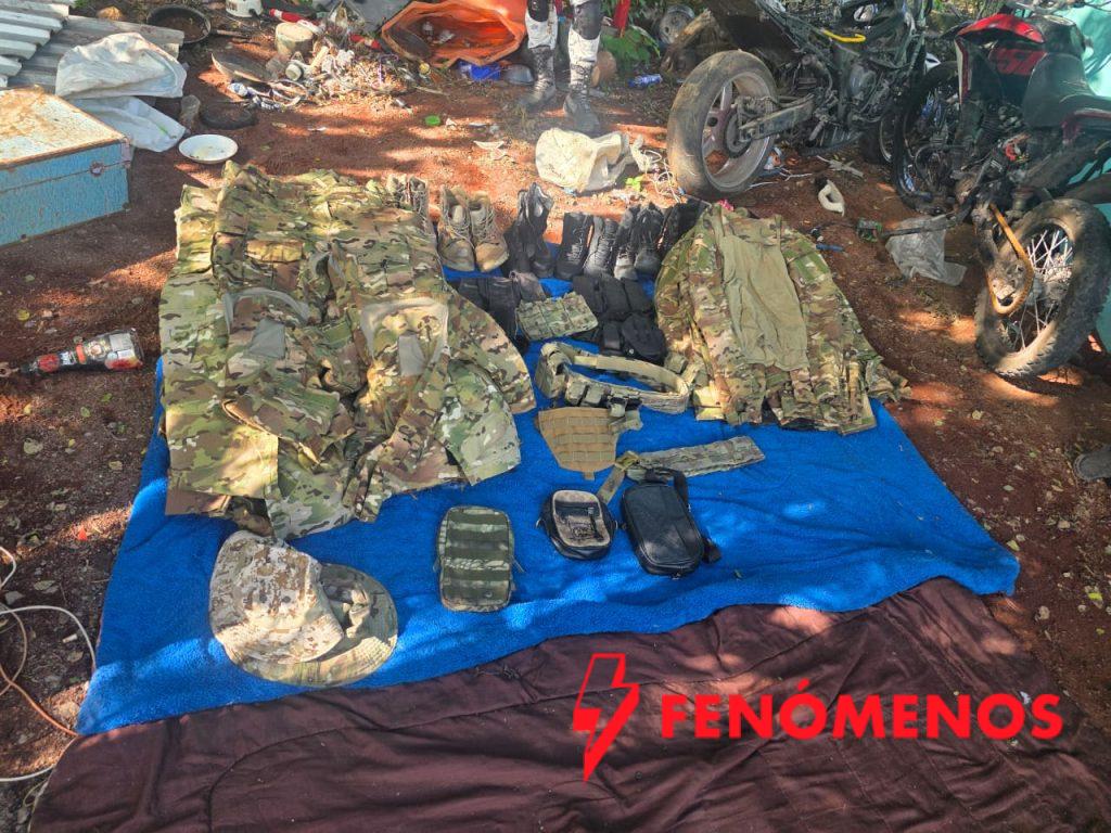 Durante la intervención, que inició el 23 de agosto pasado, se han asegurado hasta el momento dos armas largas y un arma corta calibre .22 mm; más de 570 cartuchos útiles de distintos calibres y más de 40 cargadores; prendas, chalecos, cascos, botas y accesorios tácticos en cantidad significativa; además de un vehículo, hachas y una motosierra.