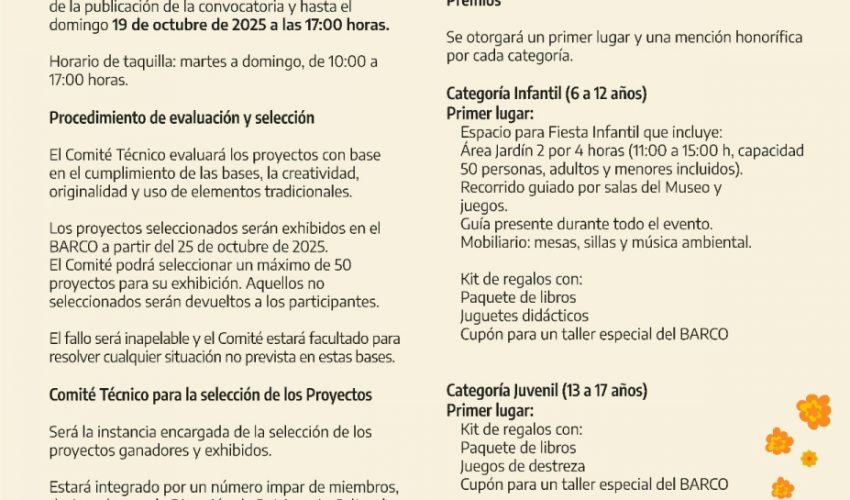 La convocatoria para esta actividad estará abierta hasta el próximo 24 de octubre a las 18:00 horas y es una invitación para los más jóvenes a que expresen libremente su creatividad en torno a las tradiciones mexicanas.