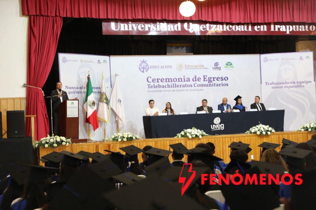 Irapuato, Guanajuato, a 16 de Julio de 2025. Con gran orgullo y emoción, la Universidad Virtual del Estado de Guanajuato (UVEG) celebró la ceremonia de egreso de 392 jóvenes pertenecientes a 25 Telebachilleratos Comunitarios del municipio de Irapuato, en un acto que reafirma el compromiso con la educación media superior en la región. Este evento se enmarca dentro de los principios del Gobierno de la Gente, impulsado por la Gobernadora, la Maestra Libia Dennise García Muñoz Ledo.