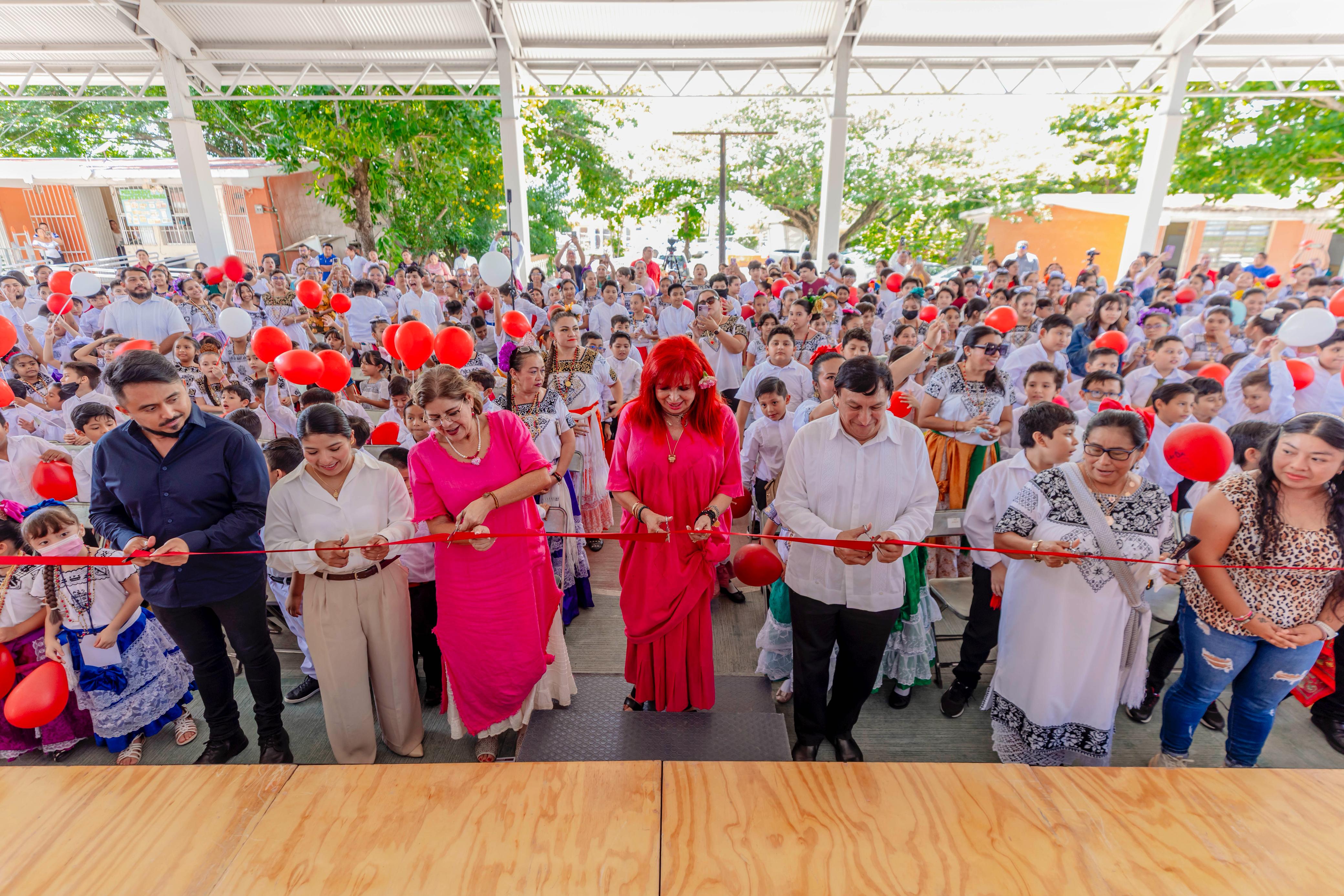 LA ESCUELA “NIÑOS HÉROES” YA CUENTA CON SU CANCHA TECHADA Y REHABILITADA; HOY LA INAUGURÓ LA GOBERNADORA LAYDA SANSORES SAN ROMÁN