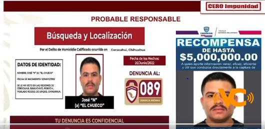La Fiscalía General de Justicia de Chihuahua ofrece 5 millones de pesos por información de «El Chueco», presunto homicida de los dos jesuitas (+Video)