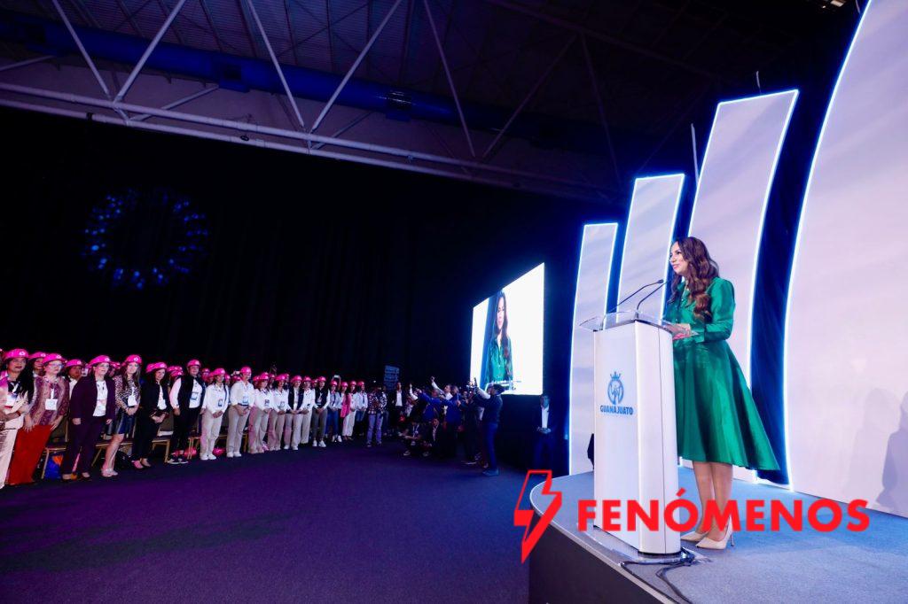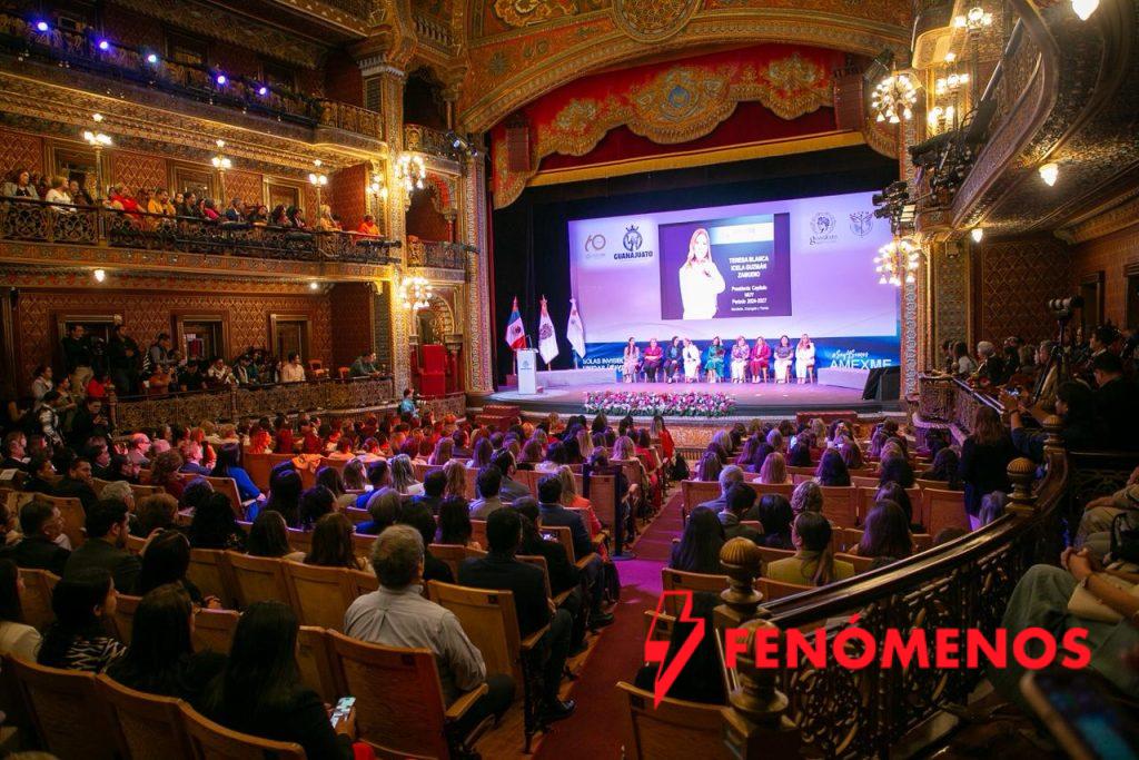 “Siempre me emociona vernos en este majestuoso Teatro Juárez, un recinto que ha visto pasar siglos de historia y que hoy brilla más por el talento y la visión de 450 mujeres líderes que hoy están aquí”, dijo Libia Dennise.