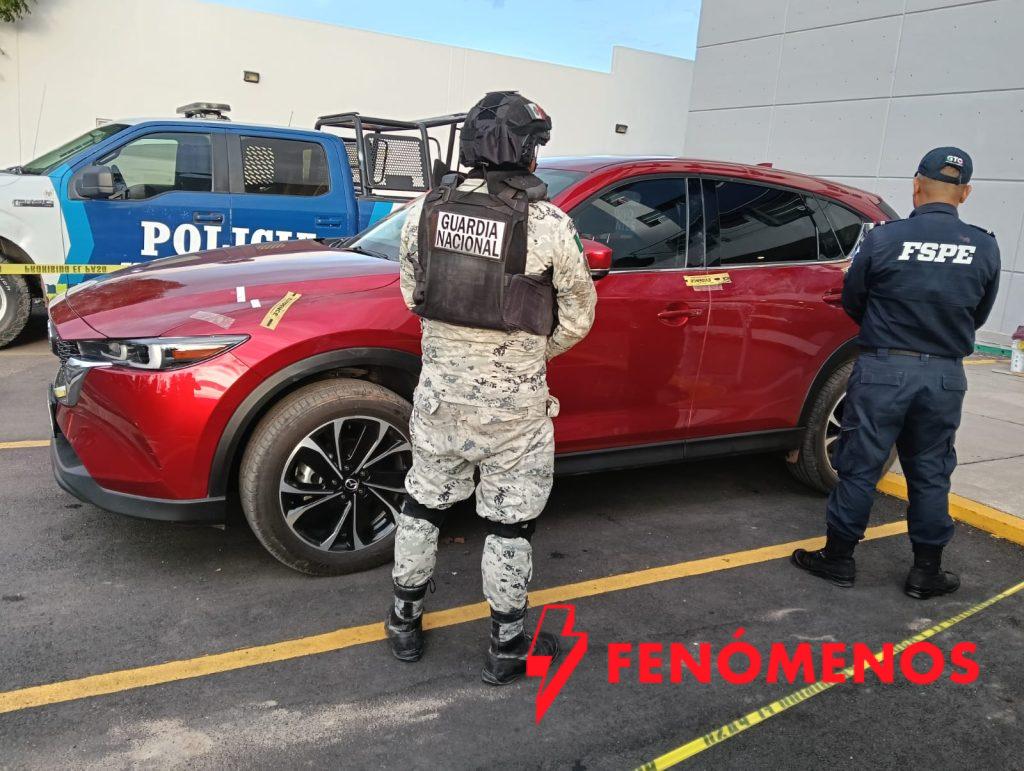 Además del vehículo Mazda CX-5, modelo 2023, se aseguró un arma larga calibre 7.62 x 39 mm con cargador abastecido con seis cartuchos útiles, un revólver calibre .22 mm con dos cartuchos útiles y un casquillo percutido, así como dos teléfonos celulares.
