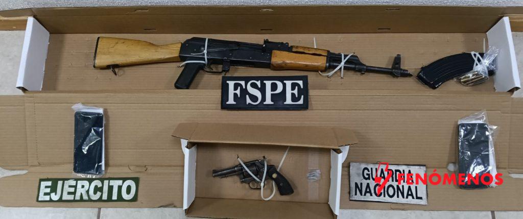 - En la acción también fueron aseguradas armas, cartuchos y teléfonos celulares, con apoyo de la Guardia Nacional y la Secretaría de la Defensa.