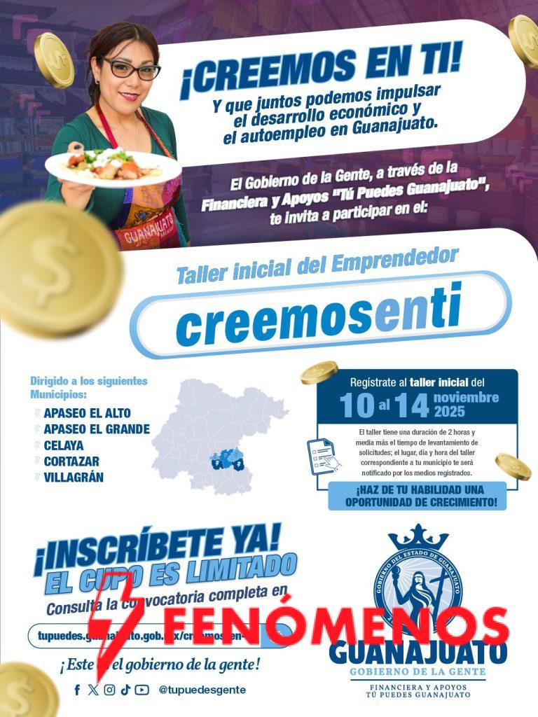 Silao, Guanajuato, a 10 de noviembre de 2025.- El gobierno de la Gente, en coordinación con la Financiera y Apoyos Tú Puedes Guanajuato, lanzó la convocatoria del programa “Creemos en ti” para cinco municipios de la zona Laja-Bajío.