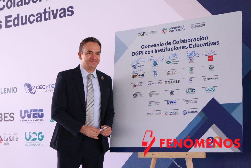 Las instituciones que suscribieron este compromiso de colaboración fueron el Comité de Capital Humano de OGPI, la Comisión de Vinculación de Organismos de Guanajuato Puerto Interior, y Guanajuato Puerto Interior en representación del Gobierno de la Gente; por su parte, las instituciones fueron la Universidad Iberoamericana León (IBERO León), Instituto Tecnológico Superior de Purísima del Rincón, CIPEC A.C., la Universidad de Guanajuato, el Tecnológico de Monterrey, Tecmilenio, CECyTE Guanajuato, la Escuela Nacional de Estudios Superiores UNAM (ENES León), Instituto Tecnológico Superior de Irapuato, Universidad Human Mundial, el Instituto Estatal de Capacitación (IECA), CONALEP Guanajuato, la Unidad Profesional Interdisciplinaria de Ingeniería Campus Guanajuato (UPIIG-IPN), la Universidad SABES, la Universidad Virtual del Estado de Guanajuato (UVEG), la Universidad Tecnológica de León (UTL), la Universidad Politécnica Bicentenario (UPB), el Instituto Tecnológico Superior de Guanajuato (ITESG), METAPHORCE, el Centro de Formación y Perfeccionamiento Directivo (ICAMI), la Universidad La Salle Bajío, la Universidad Politécnica de Guanajuato (UPG) y la Universidad Tecnológica del Norte de Guanajuato (UTNG).