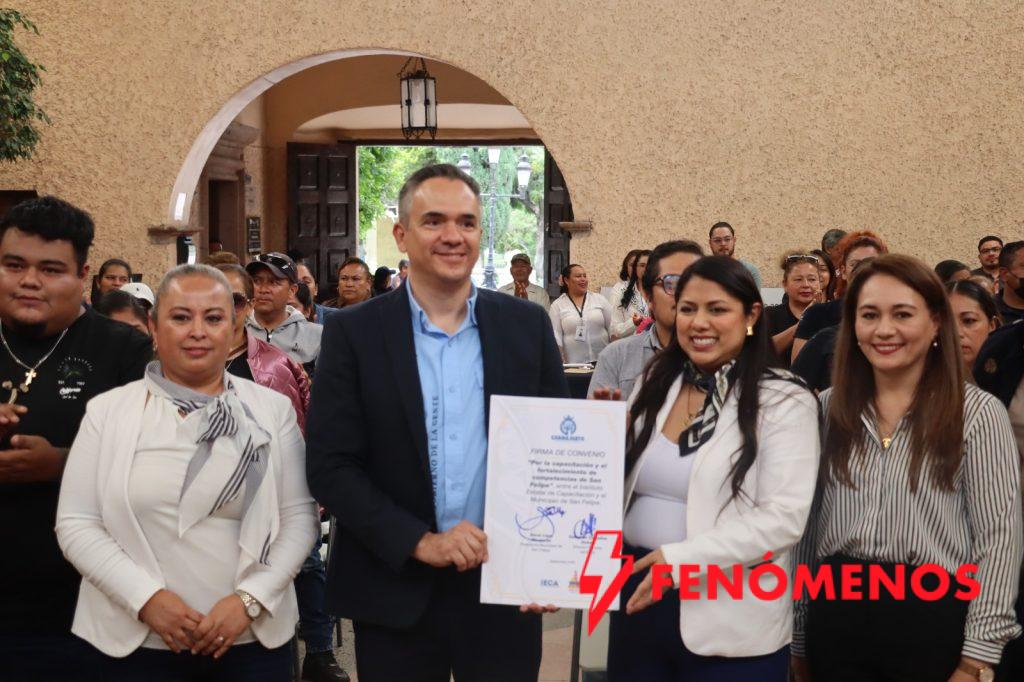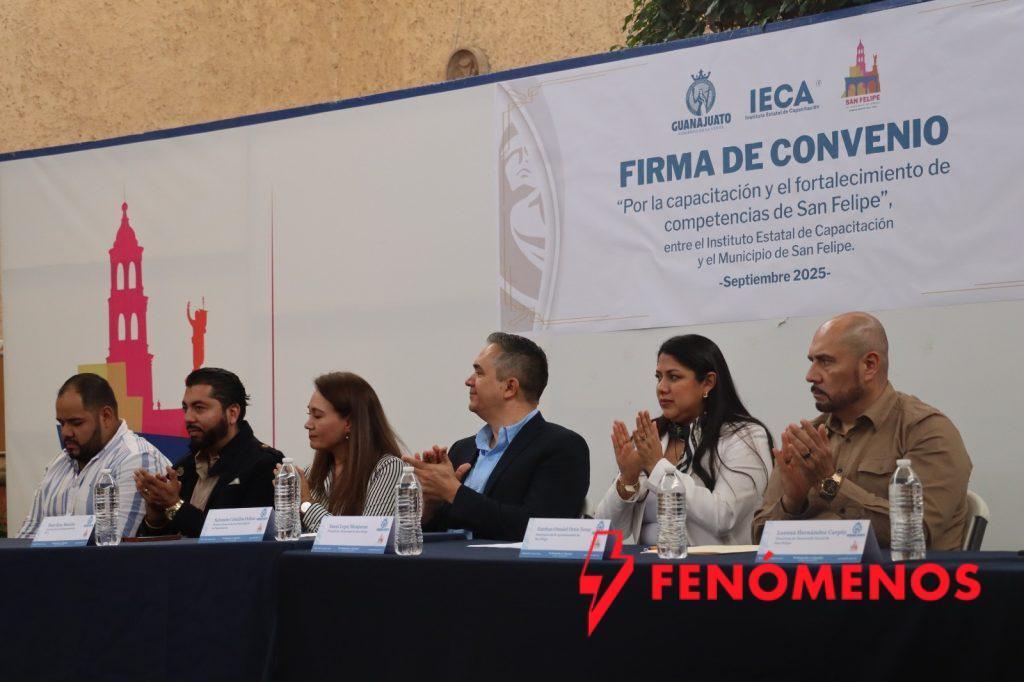 Dolores Hidalgo, Guanajuato. 03 de septiembre de 2025. Para crear oportunidades de empleo y fomentar el emprendimiento, el Instituto Estatal de Capacitación (IECA) firmó convenios de colaboración con los municipios de Ocampo, San Felipe y Dolores Hidalgo.