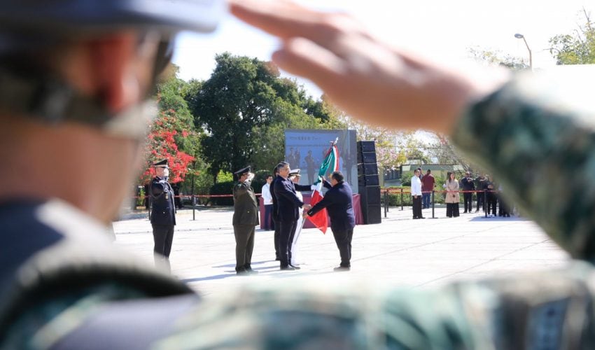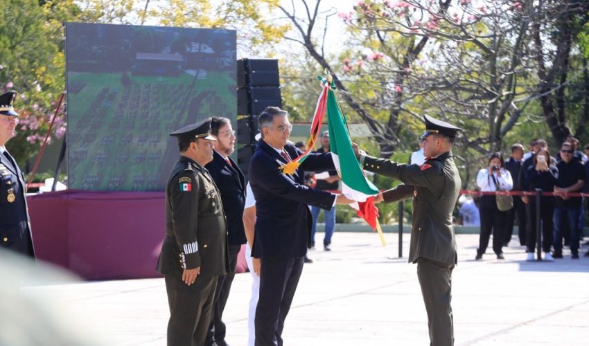 “Acompañamos con todo el orgullo y el sentido de lealtad y pertenencia que produce en cada uno de nosotros la Bandera Nacional, que es el símbolo por excelencia que entraña nuestra mexicanidad, que evoca lo mejor de nuestra historia y que es el estandarte que ha transitado nuestras transformaciones nacionales, representando el heroísmo de hombres y mujeres que se entregaron su vida para que hoy podamos disfrutar el país que tenemos”, manifestó el ejecutivo tamaulipeco.