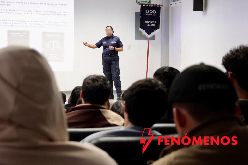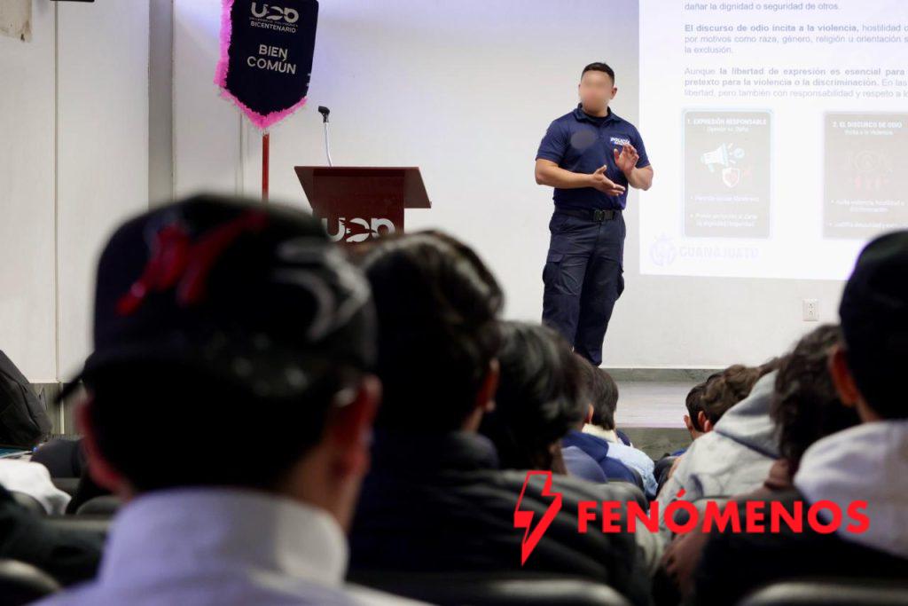 Silao, Gto., a 14 de noviembre de 2025.- Bajo el objetivo de buscar el equilibrio entre la libre expresión y la responsabilidad digital, la Secretaría de Seguridad y Paz, a través de la Policía Cibernética charló con universitarios sobre el uso de las redes sociales.
