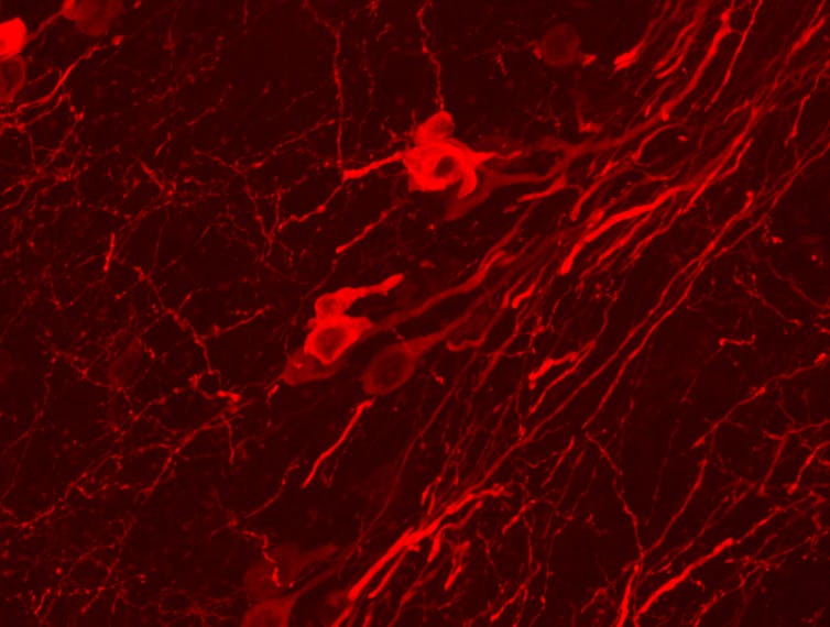Microfotografía de neuronas de la sustancia negra, que liberan dopamina ante novedades y recompensas generando una situación placentera.