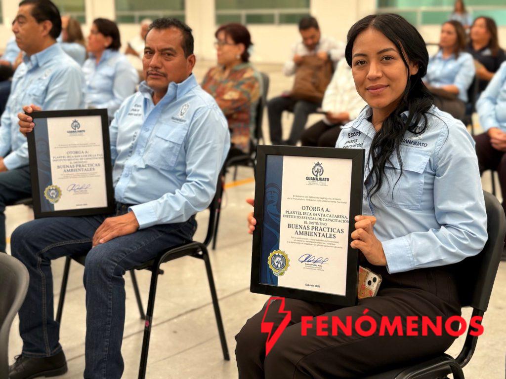 Salamanca, Guanajuato a 23 de abril del 2026.- El Gobierno de la Gente por medio de la Procuraduría Ambiental y de Ordenamiento Territorial del estado de Guanajuato (PAOT), hizo entrega por segundo año consecutivo los Distintivos Buenas Prácticas Ambientales a los 30 planteles que conforman el Instituto Estatal de Capacitación (IECA).