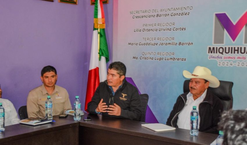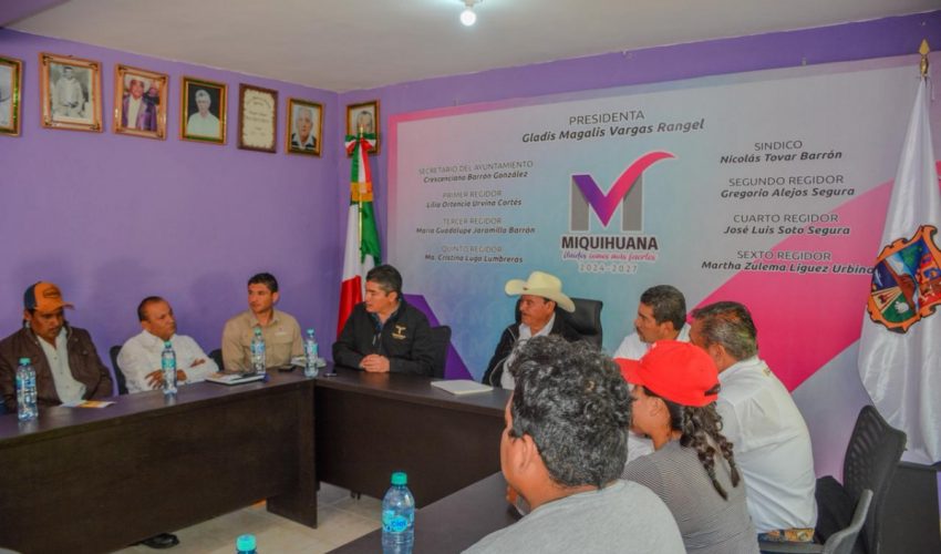 Miquihuana, Tamaulipas.– Con el objetivo de fortalecer las medidas de prevención y control del gusano barrenador, el subsecretario de Fomento Pecuario y Forestal, Cuauhtémoc Amaya García, sostuvo una reunión de trabajo con personal del Gobierno de México; del Servicio Nacional de Sanidad, Inocuidad y Calidad Agroalimentaria (SENASICA); de la Comisión México–Estados Unidos para la Prevención de la Fiebre Aftosa y otras Enfermedades Exóticas de los Animales (CPA); del Organismo Internacional Regional de Sanidad Agropecuaria (OIRSA); así como autoridades del municipio de Miquihuana.