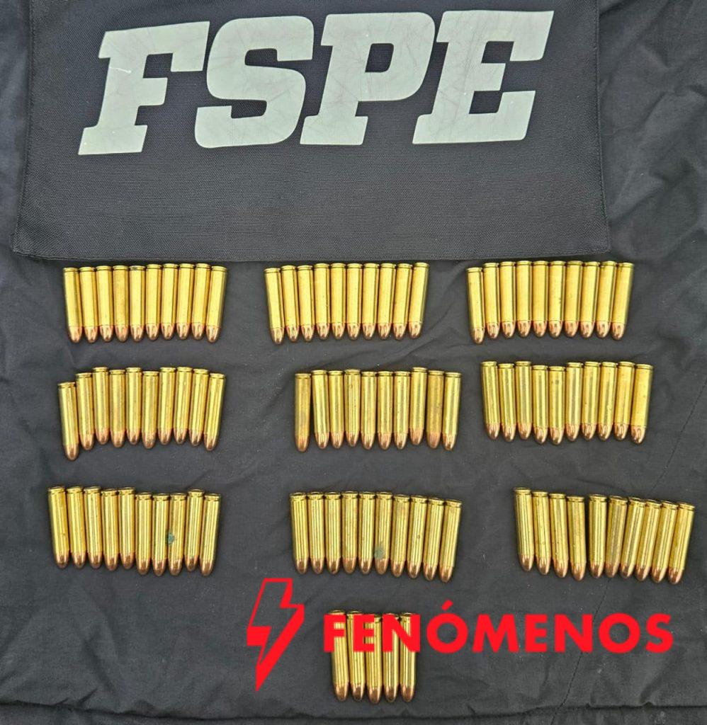 Sobre la calle Enedino Santoyo, esquina con Francisco Flores, en la colonia El Tecolote, personal operativo detectó a un hombre con actitud evasiva que intentó ocultarse al notar la presencia policial. Ante esta conducta, se realizó una inspección preventiva en la que se le aseguraron los cartuchos calibre .30 y la pistola de utilería.