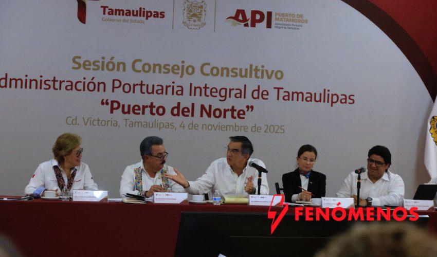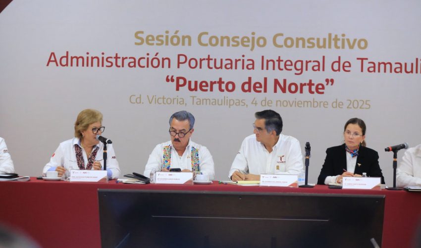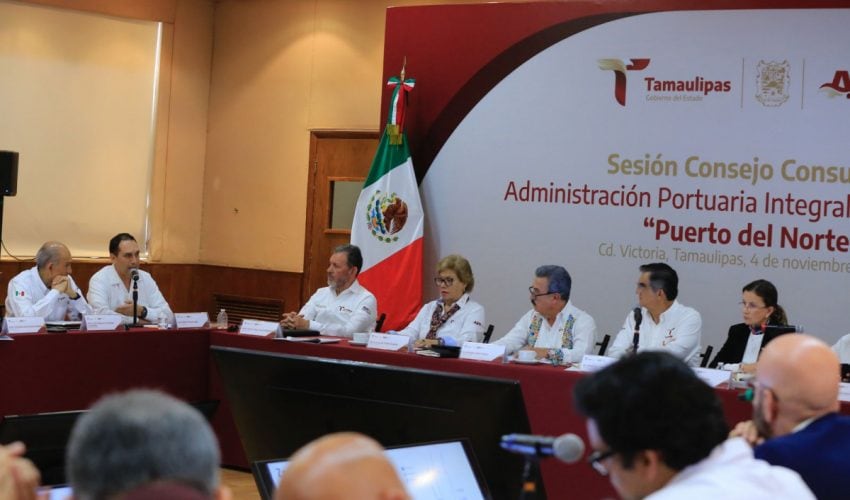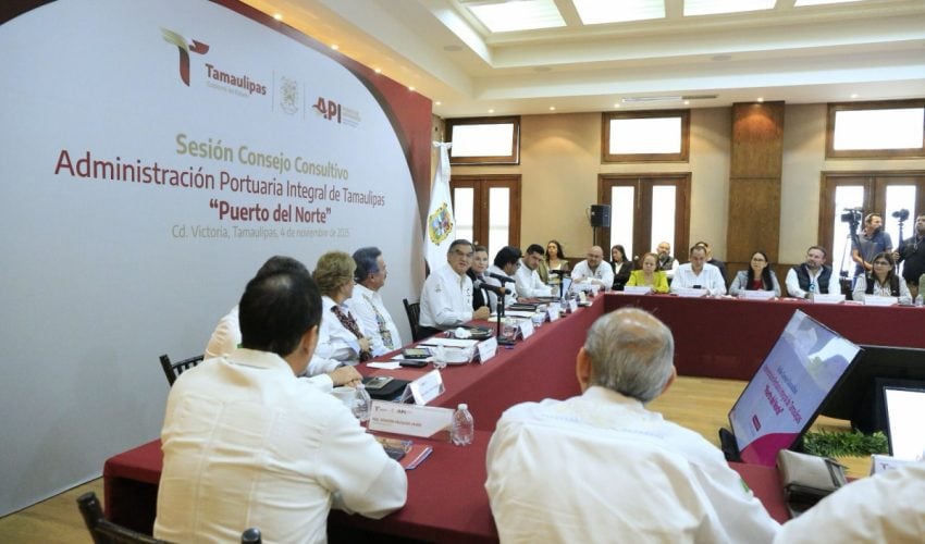Ciudad Victoria, Tamaulipas.- Al presidir la sesión del Consejo Consultivo de la Administración Portuaria Integral de Tamaulipas, Puerto del Norte, el gobernador Américo Villarreal Anaya reiteró su compromiso para apoyar las gestiones y las autorizaciones necesarias a fin de seguir impulsando este gran proyecto, que tiene una alta rentabilidad para el desarrollo nacional y que permitirá convertir a Tamaulipas en la principal frontera marítima del país.