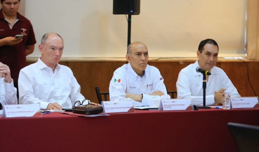 “Ustedes nos han aportado realmente en esta tarde, en estas horas de trabajo y las que nos han brindado también en sus reuniones y que me llegan a través de Gustavo (Guzmán), en algunas apreciaciones y tomas de decisiones por el Gobierno del Estado, pues ustedes nos aportan oro molido para nuestro puerto, que es también suyo, para el desarrollo de nuestra entidad y, desde luego, de nuestro país”, expresó.