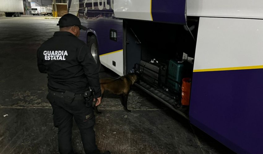 Realiza Agrupamiento Canino de la Guardia Estatal operativo para detectar narcóticos en Central de Autobuses