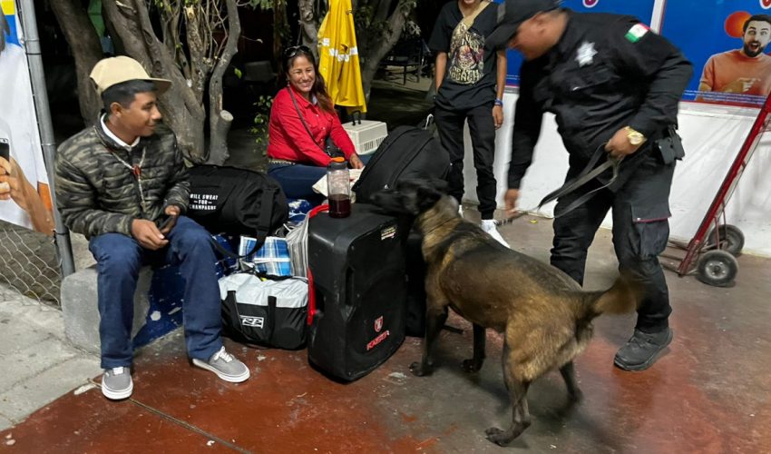 Cabe mencionar, este binomio K-9 cuenta con la especialidad en detección de narcóticos, lo cual permitió la inspección de maletas y autobuses, mismos que se encontraron sin novedad.