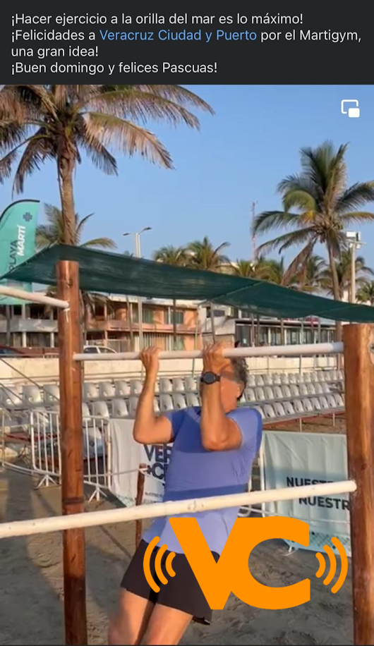 Al video lo acompañó con el mensaje «¡Hacer ejercicio a la orilla del mar es lo máximo! ¡Felicidades a @AyuntamientoVer  por el Martygym, una gran idea!  ¡Buen domingo y felices Pascuas!».