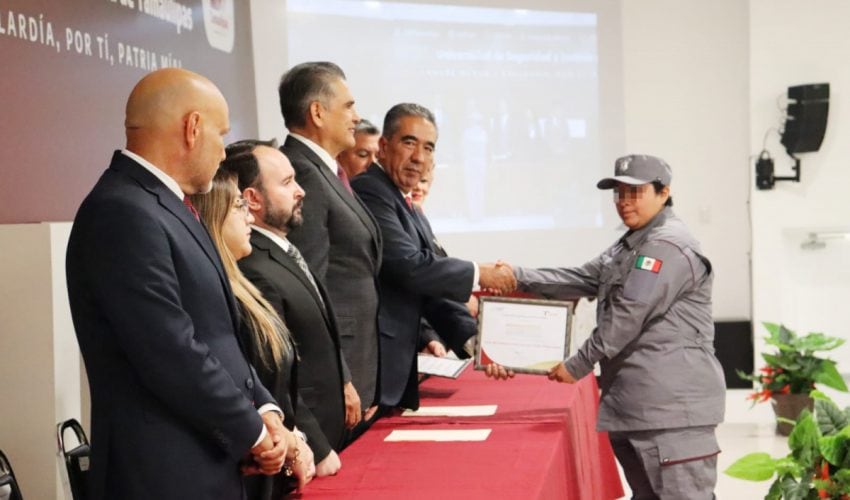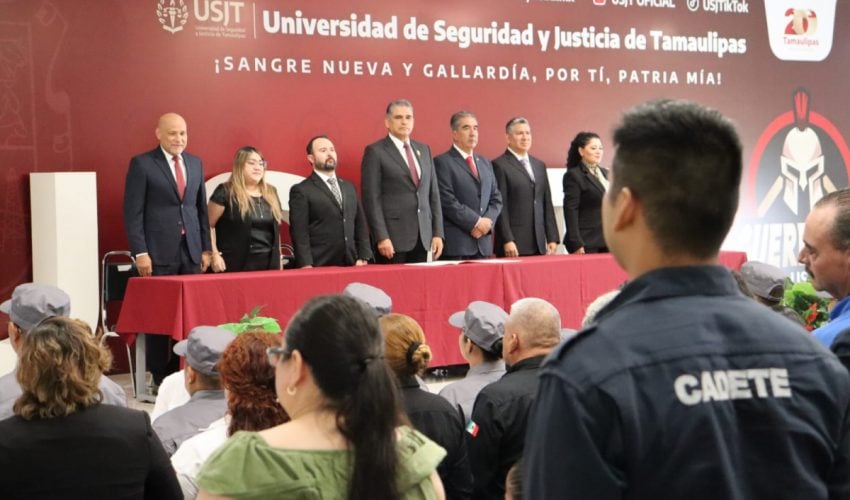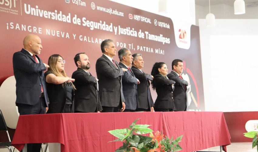 La graduación celebrada en el Auditorio de la USJT contó con la presencia del secretario de Seguridad Pública de Tamaulipas, Carlos Arturo Pancardo Escudero, quien reiteró el compromiso de la dependencia a su cargo de transformar el sistema de seguridad y justicia con la firmeza de los valores, la aplicación de las mejores prácticas y el respeto a los derechos humanos, para proteger y servir a la ciudadanía.
