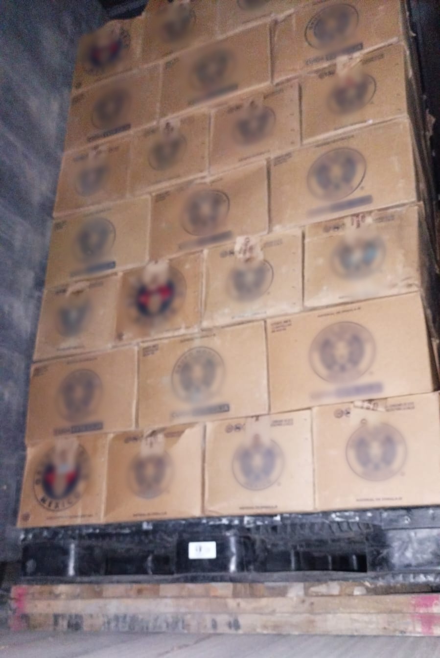 Durante la inspección se localizó mercancía consistente en aproximadamente mil 100 cajas de cerveza, cada una con 12 botellas de 940 mililitros, cuyo valor comercial estimado es de 440 mil pesos.