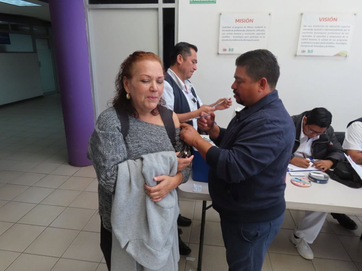 Personal de la Jurisdicción Sanitaria No. 1 de la Secretaría de Salud del Gobierno de Tamaulipas acudió a esta institución educativa para aplicar alrededor de 200 dosis a la comunidad escolar contra las enfermedades de tétanos, neumonía, influenza y hepatitis B.