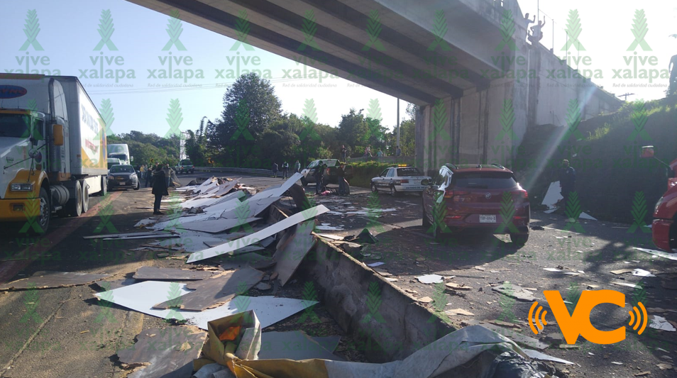 Esta mañana aproximadamente a las 8:30am se suscitó un accidente vial en donde se vio involucrado un tráiler Freightliner tipo cascadia color rojo, su conductor presuntamente habría perdido el control de la unidad cuando circulaba hacia Xalapa, impactando contra el muro divisorio y contra una pareja de motociclistas.