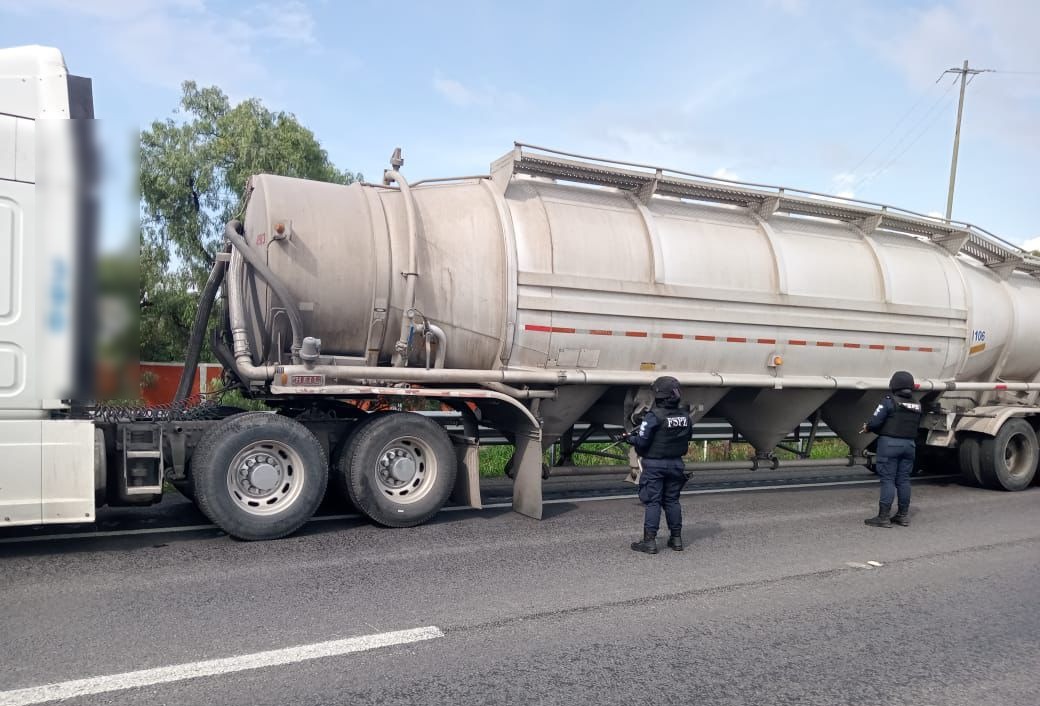 Secretaría de Seguridad y Paz frustra robo a transporte de carga en Carretera Federal 57 y asegura dos tractocamiones