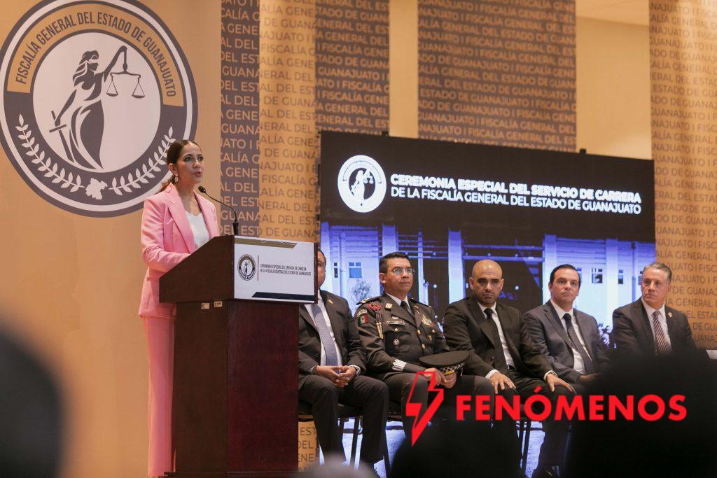 Previamente, la Gobernadora de la Gente asistió como invitada especial a la Ceremonia Especial del Servicio de Carrera de la Fiscalía General del Estado de Guanajuato (FGE).