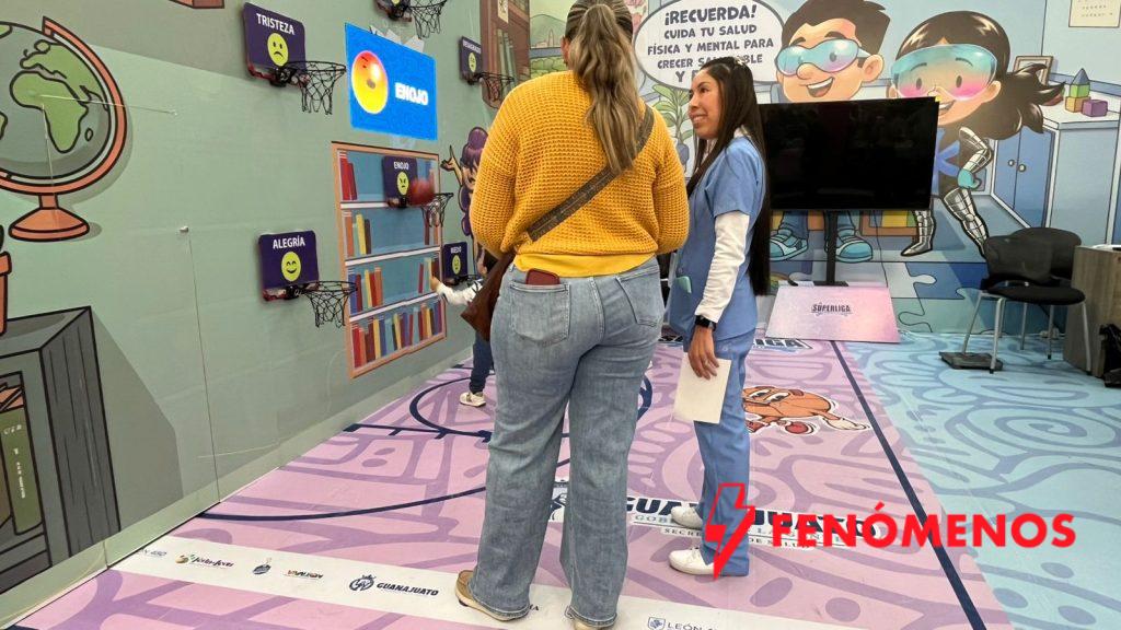 En este espacio se desarrolla una dinámica interactiva mediante un juego de básquet, en el que las y los asistentes emparejan pelotas con emoticones proyectados en una pantalla LED; una vez identificada la pareja correcta, encestan para sumar puntos y al finalizar reciben un souvenir.
