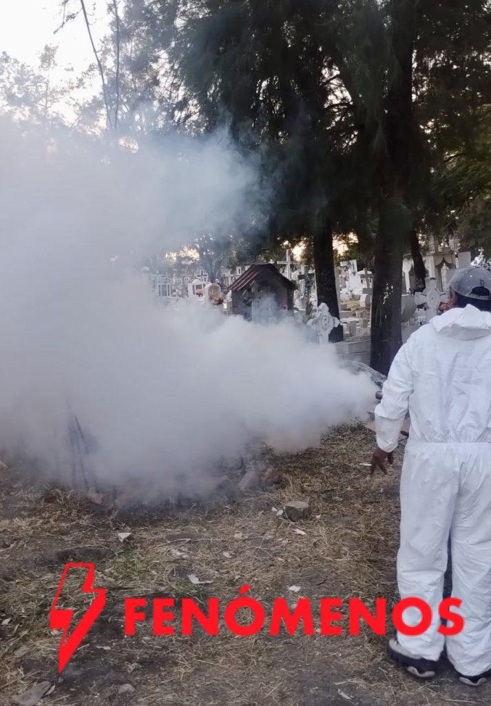 Irapuato, Guanajuato. 31 de octubre de 2025.- Con motivo de las festividades de Día de Muertos, personal del área de Vectores de la Jurisdicción Sanitaria VI Irapuato implementó acciones de prevención y control en los panteones de los seis municipios que conforman la jurisdicción, para reducir la presencia del mosquito transmisor del Dengue.