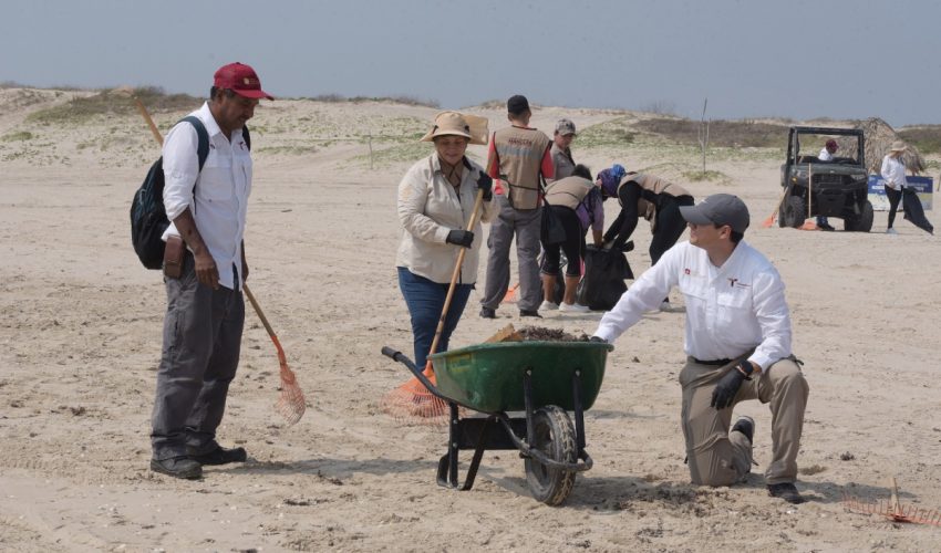 Con la participación de brigadistas del Programa de Empleo Temporal del poblado La Pesca, la SEDUMA fortalece en Tamaulipas una acción intersectorial de limpieza, separación y manejo adecuado del sargazo y residuos sólidos, sumando esfuerzos con el Gobierno