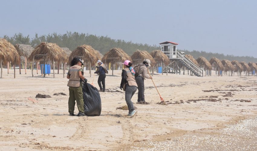 Como parte de estas acciones, brigadistas del Programa de Empleo Temporal del poblado La Pesca, en coordinación con personal de la Dirección de Recursos Naturales y Manejo de Áreas Naturales Protegidas, realizaron labores de separación de sargazo y residuos sólidos, con el objetivo de garantizar su manejo adecuado y evitar afectaciones al entorno marino.