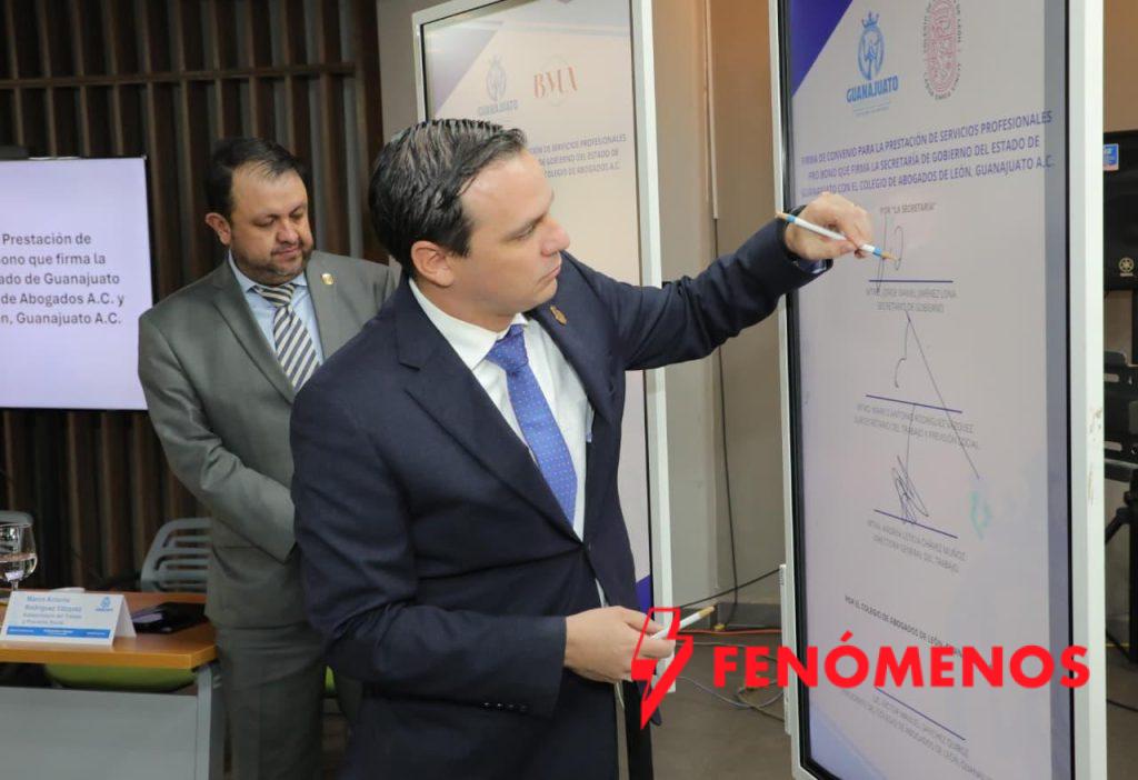 León, Gto., a 04 de noviembre de 2025.- Con la finalidad de consolidar la armonía y la justicia laboral en el estado de Guanajuato, el Gobierno de la Gente, a tráves de la Subsecretaría del Trabajo y Previsión Social firmó un convenio de colaboración para la prestación de servicios profesionales pro-bono con la Barra Mexicana, Colegio de abogados A.C. y el Colegio de Abogados de León, Guanajuato A.C.