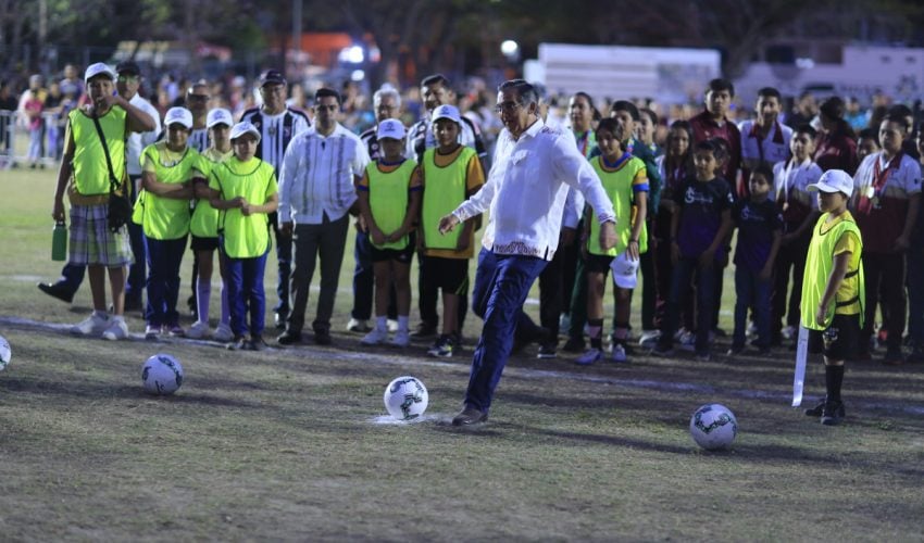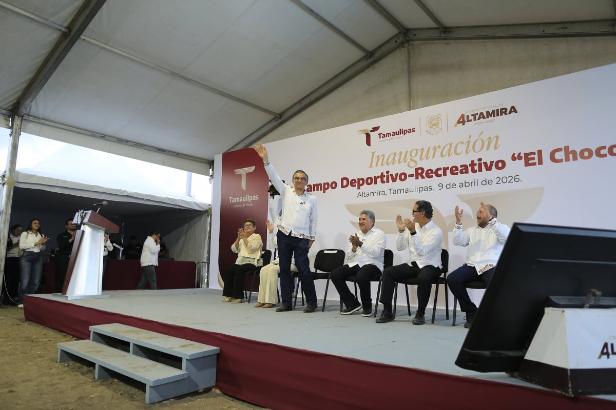 Como parte de sus actividades, el mandatario tamaulipeco llegó a la colonia Alejandro Briones, sector El Chocolate, en donde inauguró un campo deportivo como parte del Mundialito Social, con motivo de la Copa Mundial de la FIFA.