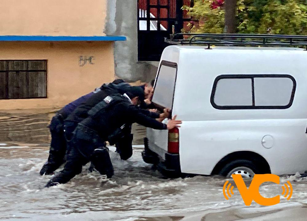 Por ejemplo, en la calle Leopoldo Kiel de la Colonia Rafael Lucio los efectivos estatales auxiliaron a unas personas que se quedaron varadas debido a las inundaciones provocadas tras varias del aguacero.