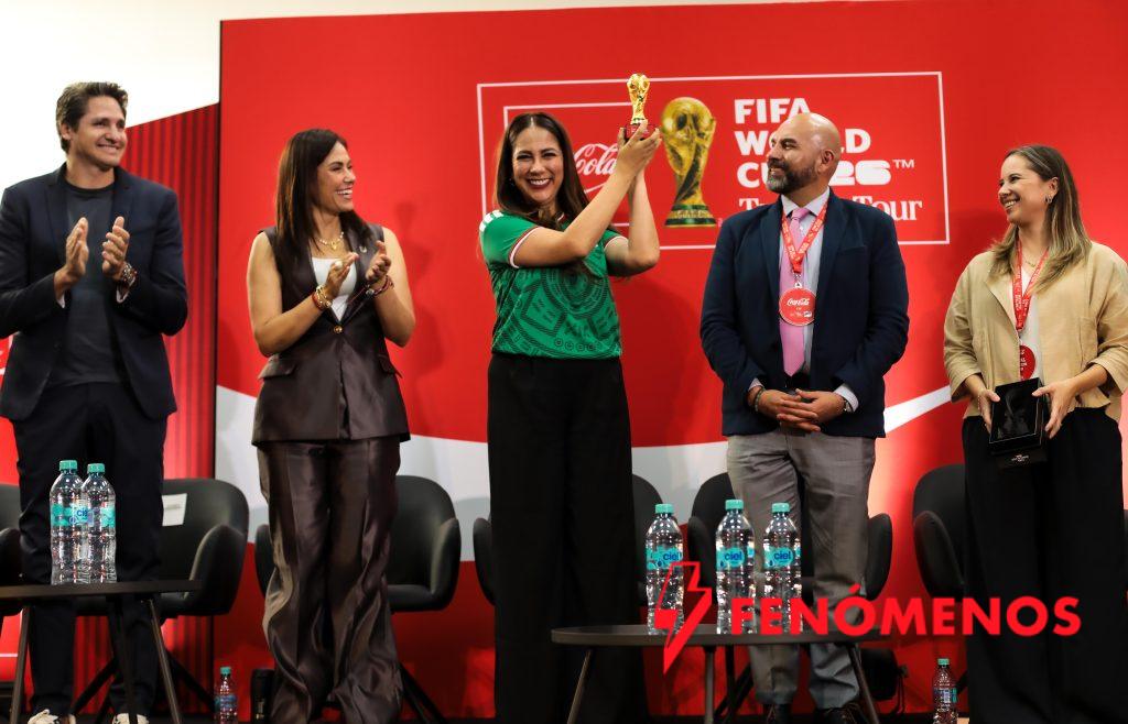 “Para mí es un verdadero honor poder estar aquí, lo que tenemos frente a nosotros es un trofeo icónico, el sueño de millones de futbolistas, el anhelo de las naciones y de las aficiones, es el símbolo de la cúspide del esfuerzo, es historia pura”, dijo la Mandataria Estatal.